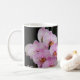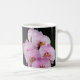 Bright pink exotic orchids add a tropical note to colorful coffee mug.