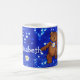 Le petit ours de nounours mignon de danse avec l'arc bleu, les marguerites et le nom fait sur commande est une tasse d'amusement pour cette petite fille spéciale dans votre vie. Personnalisez le nom dans le modèle fourni. Conception originale de studio de conception d'Anura.