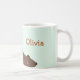 Profitez de votre boisson préférée - chocolat chaud / café / thé cet automne, avec la tasse d'ours endormie la plus mignonne. Parfait pour un cadeau d'anniversaire pour les enfants et les adultes, ou pour vous offrir. Avec un ours endormi avec votre nom en arrière - plan vert citron pastel, cela vous fera sourire.