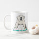 L'Ours polaire présente un dessin d'un ours polaire accroché à un morceau de glace qui fond flottant dans la mer froide de l'Arctique. Un message sur le changement climatique sur l'environnement fragile de l'ours polaire et une image attrayante de ce magnifique prédateur.