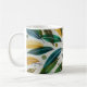 Folhas de vários tipos feitas em aquarela, espalhadas umas das outras, em cores verdes e amareladas, simulando a chegada do outono.