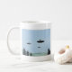 Une aquarelle de trois OVNI soucoucheurs au-dessus des montagnes orne cette tasse amusante !