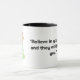 Cette tasse fantaisiste présente une illustration ludique d'un OVNI de dessin animé planant au-dessus d'un champ de lignes vertes brillantes, accompagnée de la citation ludique "Croyez et ils viendront." Inspiré par la fascination pour l'inconnu et l'esprit ludique de l'imagination de l'enfance, le design combine des oeuvres d'art fantaisistes avec une touche d'humour. La palette de couleurs pastel et la typographie ludique créent un design léger et attrayant qui éveille la curiosité et encourage le sens de l'émerveillement.