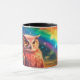 Cette tasse a un arc-en-ciel et un hibou en photo.