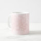 This coffee mug features a frosty pale pink urban grunge background with a line art drawing of chrysanthemums in pink and customizable and a name in the corner. Original art from Dogwood & Thistle.