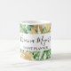 Aquarelle Verdure Palm Feuille Gold Tropical sur White Script Carte de visite Mug avec customisé manuscrit élégant script lettré signature typographique pour le nom. Personnalisez avec votre nom et votre profession ou nom commercial.