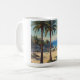 Publicité de voyage française et européenne - Plage, personnes, palmiers, mer bleue et ciel illustration
