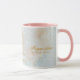 Elégant thème astrologique zodiac Aquarius l'étoile du porteur d'eau signe café Mug sur subtil bleu glace mottled arrière - plan cosmique. typographie de police populaire monogramme nom et détails de texte peuvent être facilement personnalisés ou supprimés. Une touche de parties scintillant en faux or céleste ajoute un peu de glamour et de mystique. Disponible dans les 12 enseignes pour créer un ensemble correspondant - avec option pour customiser l'intérieur et gérer la couleur via le menu d'édition Zazzle.
