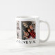 Mug de café Joyeuse fête des pères avec 6 photos et texte qui lit "PAPI, JOYEUSE FÊTE DES PÈRES, NOUS T'AIMONS". Peut être modifié pour joyeuses fêtes, joyeux anniversaire, joyeël Noël, ce qui en fait le cadeau parfait pour tout parent. Le mug est facilement personnalisable et les styles de police, la taille et les couleurs peuvent être modifiés en cliquant sur le lien Personnaliser davantage après la personnalisation.