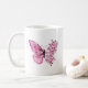 Arrangement de fleurs de papillon rose avec fleurs de cerisier japonais rose sur arrière - plan blanc.