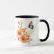 C'est une jolie tasse pour n'importe qui, avec l'image d'un joli papillon bleu et orange volant autour d'un jardin fleuri de pavot orange. Derrière l'image papillon se trouve une trace de parties scintillant et tourbillons en or. L'image est répétée deux fois sur la tasse, avec votre nom en noir entre eux.