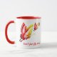 Cette tasse lumineuse et colorée a un papillon rouge et jaune qui se dirige vers le ciel contre un arrière - plan blanc, et un dicton motivant : Ne vole pas, sonnez !