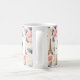 Une tasse avec un élégant motif. Roses roses, papillons gris-bleu et tour Eiffel. Une motif à thème française.