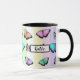 Jolie tasse à café papillon rose, violet, jaune, vert et bleu.
