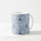 Seamless Paris text illustration with Eiffel Tower, tricolor heart shapes and French flag decoration on blue background for Valentine's Day