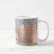 Parties scintillant moderne en argent girly porte le nom et la tasse de café monogrammée. Ce design présente des gouttes brillantes de parties scintillant gris argenté (gris) sur arrière - plan métal brossé rose rose faux rose avec personnalisation monogramme initial et modèle de texte de prénom. Grand cadeau féminin pour petite amie, jour de mère, anniversaire, mariage, douche nuptiale, fête de 16 ans, affaires, travail professionnel et pour toute personne qui aime des choses brillantes et glamour. Veuillez noter que ce design est un effet photo imprimé sans réelle parties scintillant.