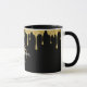 Des gouttes de parties scintillant dorée chic, un nom de script et un monogramme d'or sur une tasse noire arrière - plan. Vous pouvez personnaliser le nom, le monogramme et customiser la police et les couleurs pour créer votre propre design unique. Conçu par Thisnotme©