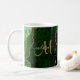 Prenez votre café du matin dans le style avec cette tasse à café personnalisée élégante avec de l'agate verte accentuée avec de la parties scintillant fausse or. Personnalisez votre monogramme initial en calligraphie manuscrite en écriture d'or avec votre nom ci-dessus. Un cadeau féminin unique pour l'anniversaire, les fêtes et toute occasion spéciale. Conçu pour vous par des Tee - shirts extrêmes !