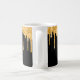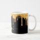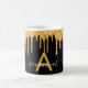 Une tasse monogrammée fillette et tendance. Un arrière - plan noir chic décoré de faux gouttes de parties scintillant dorée, la peinture goutte à goutte. Personnalisez et ajoutez un nom et une lettre monogramme. Lettres blanches et dorées. Le nom est écrit avec un script de style moderne écrit à la main avec des swashes. Pour que les swashes ne suppriment que le nom de l'échantillon, laissez les espaces ou émoticônes devant et après le nom.