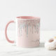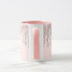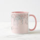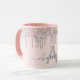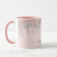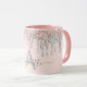 Une tasse monogrammée fillette et tendance. Une arrière - plan rose vif féminine décorée d'or rose et de parties scintillant faux argent. Personnalisez et ajoutez un nom et une lettre monogramme. Lettres de couleur grise. Le nom est écrit avec un script de style moderne écrit à la main avec des swashes. Pour que les swashes ne suppriment que le nom de l'échantillon, laissez les espaces ou émoticônes devant et après le nom.