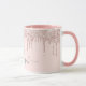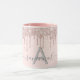 Une tasse monogrammée fillette et tendance. Une arrière - plan rose vif féminine décorée de gouttes de parties scintillant dorée rose. Personnalisez et ajoutez un nom et une lettre monogramme. Lettres de couleur grise. Le nom est écrit avec un script de style moderne écrit à la main avec des swashes. Pour que les swashes ne suppriment que le nom de l'échantillon, laissez les espaces ou émoticônes devant et après le nom.