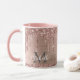 Parties scintillant d'or moderne, rose girly goutte nom personnalisé et mug monogrammed. Ce design présente des gouttes brillantes de parties scintillant rose rose pastel sur arrière - plan de métal rose brossé avec personnalisation monogramme initial et modèle de texte de prénom. Un cadeau féminin parfait. Si vous avez besoin d'aide ou d'articles correspondants, veuillez me contacter. Veuillez noter que ce design est imprimé effet photo.