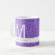 Personnalisez cette parties scintillant brillante violet tasse avec monogramme personnalisé ou initiale et nom ou libellé. Les étincelles royales violettes sont une image imprimée et le monogramme est super moderne, minimal, chic et élégant. — Modifiez les polices et les couleurs de bande ou de texte en cliquant sur PERSONNALISER.