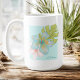 Sirotez votre café ou votre thé dans cette tasse de style insulaire qui comprend un bouquet de fleurs tropicales et un feuillage dans une palette de couleurs pastel cool douces. Ce design présente un bouquet de plumeria rose pastel, hibiscus bleu et feuille de monstère verte sur un arrière - plan carré bleu minty cool. Personnalisez le texte avec votre nom ou tout autre texte souhaité. Cette tasse fait un cadeau personnalisé réfléchi ou un grand ajout à votre maison de plage ou à votre cuisine de chalet d'été.
