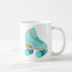 Montrez-leur comment vous roulez ! Cette tasse à café personnalisée présente une illustration réaliste d'un patinage classique à quatre rouleaux en turquoise. Il est prêt à être personnalisé avec un nom dans la coordination des lettres de script sur le côté du patinage. Fait un grand cadeau pour quiconque aime le roller ou est une fille en derby à rouleaux. Le graphique et le nom apparaissent de part et d'autre de la tasse.