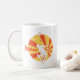 La tasse montre un patineur téméraire sautant en jaune et orange.