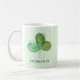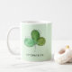 Cette tasse à café verte moderne est décorée d'un shamrock d'aquarelle dessiné à la main. Parfait pour la St Patrick's Day ou toute autre journée pour célébrer votre héritage irlandais. Facile à personnaliser. Aquarelle originale © Michele Davies.