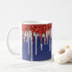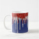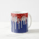 A bold and eye-catching abstract design featuring cascading glitter drips in red and white on a blue background. The sparkling texture and fluid paint effect create a modern patriotic look that feels festive, artistic, and energetic. Glitter drips are simulated in the artwork.