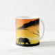 Illustration d'un paysage africain d'imaginaire, avec une silhouette d'un arbre, d'un rhinocéros, d'une girafe et d'une cigogne