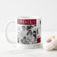 Petit marron de paix joie amour lettering 3 photo collage script de vacances tasse de café. Customisez cette tasse avec 3 photos et un accueil personnalisé.