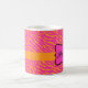 Profitez de votre boisson préférée dans cette chic tasse monogramme. Le design graphique zèbre à rayures colorées est l'une des tendances artistiques et design les plus chaudes, et est extrêmement populaire de la mode à la décoration maison. Cette collection sophistiquée d'imprimés de zèbres et de guépards rose et orange fuchsia est conçue par Phyllis Dobbs. Un emblème fuchsia créa une zone de personnalisation. Il est entièrement personnalisable pour inclure votre nom, vos initiales de monogramme, votre nom commercial ou d'autres mots pour transmettre votre message.