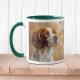 Cette tasse colorée célèbre le beau chien breton ! Deux côtés de la tasse ont un portrait d'une Bretagne orange et blanche contre un arrière - plan abstrait éclairé. Les couleurs dominantes sont l'orange, le marron, le bronzage et le blanc. Au centre se trouve un script qui dit Bretagne, mais vous pouvez le changer ou même le personnaliser, si vous le souhaitez. Cette tasse sera remarquée !