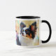 Cette tasse colorée célèbre l'adorable et énergique chien Papillon ! Deux côtés de la tasse ont un beau portrait d'un chien Papillon contre un arrière - plan abstrait. Les couleurs dominantes sont le bleu, le rose, l'or et plus. Au centre se trouve le script qui dit Papillon, mais vous pouvez le changer ou même le personnaliser, si vous le souhaitez. Cette tasse sera remarquée !