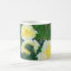 Une tasse blanche décorée de Roses alchimistes d'un tableau original de Judy Adamson Oil Pastel.