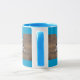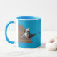 Pelican sitting on the rough planks of a wooden pier is mirrored on each side of the mug. His shadow extends off of the planking on to the background "surface". Customize to change colour of background. Text in centre reads "Time to relax"