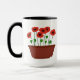 Tasse de café dans une illustration de pavots rouges poussant dans un planteur d'argile en terre cuite