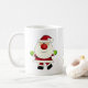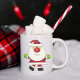 Mignonne tasse à café de vacances sport un Père Noël lunatique avec un grand nez rouge et des mitaines vert vif. Modifiez la légende du texte central "Ho Ho Ho". Vous avez le choix entre les styles et les couleurs.