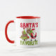 Mignonne tasse design de Noël colorée avec du texte rouge et vert qui dit Père Noël Favori, et le Père Noël, un arbre de Noël et un renne !