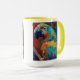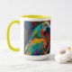 Café tasse pour ceux qui aiment les perroquets. C'est une jolie illustration dans un style de peinture à l'huile d'un perroquet coloré bleu, rouge et jaune Macaw.