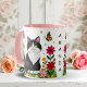 Mug Personalized Cat, Flowers and Butterflies