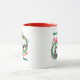 Adorable Cute Fun Retro Christmas Poodles Wreath Custom Mug for Poodle Lovers. Two adorable Gray/Black Poodles! Each Poodle is wearing a red collar with a bell on it, and is framed with a pretty Holly Christmas Wreath and Merry Christmas text design. Personalize it with your ideal text.