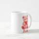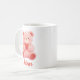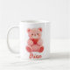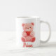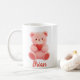 Warm up your heart with this adorable and personalized teddy bear mug. The design features a charming, hand-painted watercolor pink teddy bear sitting down and lovingly holding a vibrant red heart. Below the illustration is a customizable space for a personalized name in a stylish red script font, making it a truly one-of-a-kind gift for someone special.