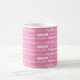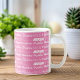 A pretty personalized mug gift for a little girl decorated in nine different fonts spelling your name in white. Cute customizable present with fun typography.