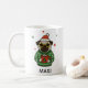 Get cozy this season with this adorable Personalized Pug Mug! The charming illustration features a cute pug wearing a festive red Santa hat and a green ugly Christmas sweater. The pug is accessorized with fun star-shaped glasses and is holding a little mug of hot cocoa topped with marshmallows. Customize it with any name (e.g., your dog's name or a family name) to create a perfect, breed-specific gift for a Pug owner, a unique stocking stuffer, or a fun way to enjoy your own hot drinks.