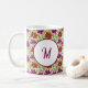 This ceramic mug features a vibrant botanical pattern that combines rich magenta and warm orange floral motifs, designed to bring a touch of nature into any daily routine. The intricate garden-inspired design reflects a curated approach to home decor, offering a sophisticated look that complements a variety of interior styles. A central circular frame allows for a subtle monogram, providing an opportunity to tailor the item to personal preferences or to create a unique gift.