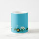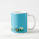 Tasse personnalisée avec tracteur vert et hydrangées blanches et abeilles conçues avec texte personnalisable lisant Bee-YOU-Tiful. numériquement dessiné et coloré et conçu pour toute personne qui aime tracteurs et fleurs.